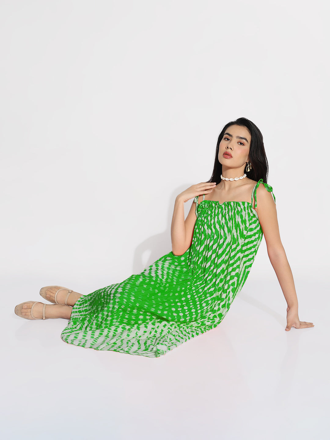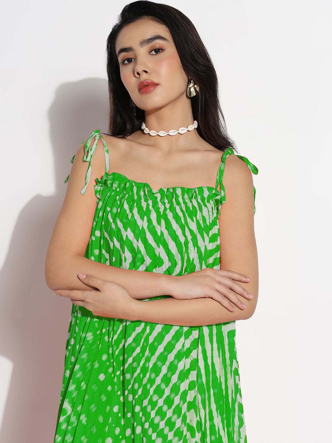 To maintain the vibrant color and fabric quality of your Women Green Dyed A-Line Dress. hand wash in cold water with mild detergent. Avoid bleach and tumble drying to preserve its unique dye and fit.